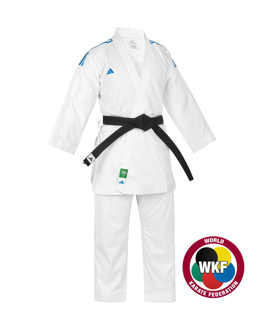 kit de uniforme WKF, ligero y resistente, ideal para entrenamientos y competencias iniciales. Ofrece libertad de movimiento. Perfecto para iniciar en el camino del karate, incluye 2 chaquetas 1 pantalon.